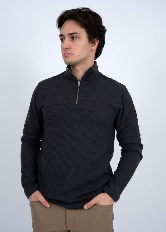 HEDGE MENS 1/4 ZIP MOCK TEE IN BLACK MELANGE