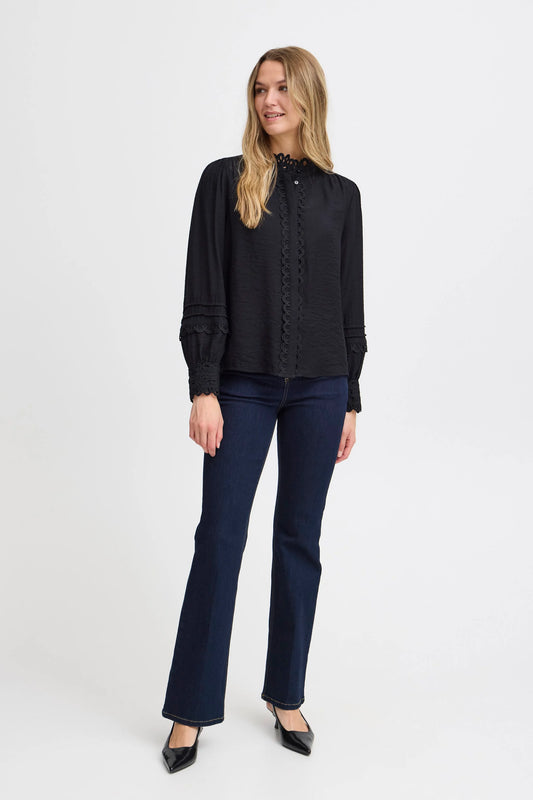FRANSA DENTELLE BLOUSE WITH LACE DETAIL IN BLANC DE BLANC