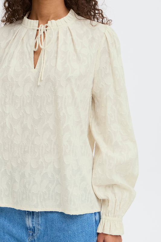 ICHI EONA COLLARED BLOUSE WITH TIE IN BIRCH