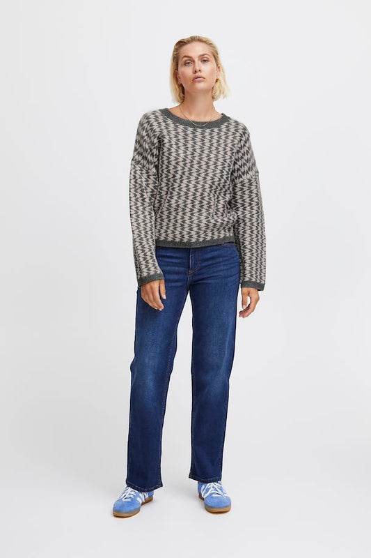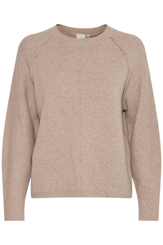 ICHI BALLIA LONG SLEEVE KNITTED PULLOVER IN STRING MELANGE