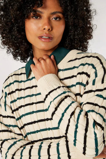 APRICOT TWO COLOUR STRIPE ARAN DETAIL BOXY SWEATER