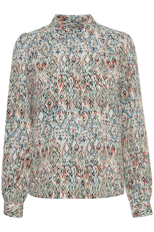 ASTRID LONG SLEEVE BLOUSE WITH PATTERN IN GREEN COMBO