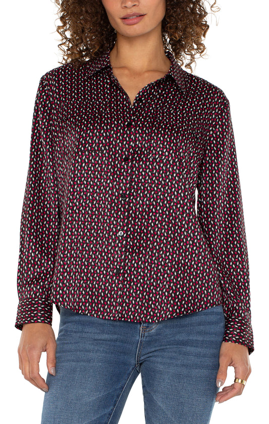 LIVERPOOL WOMENS LONG SLEEVE FLAP BUTTON FRONT WOVEN BLOUSE RUBY DOT