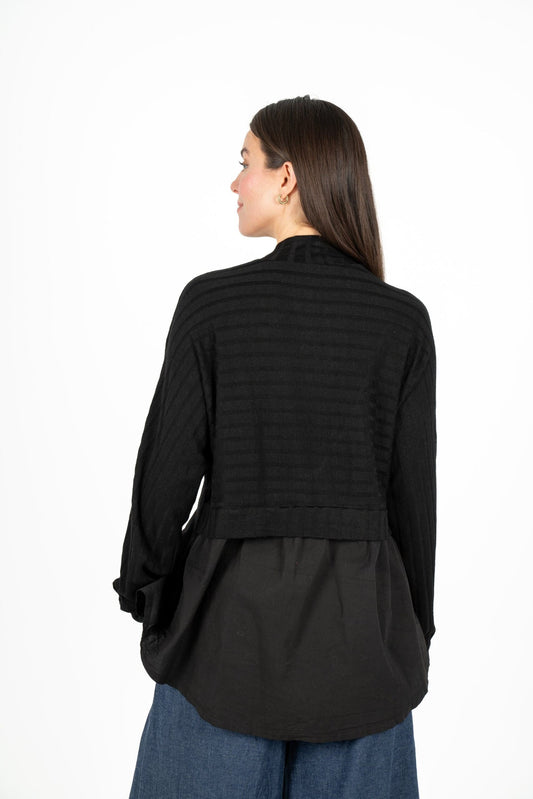 M MADE IN ITALY BLACK KNIT & WOVEN TUNIC
