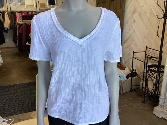 M MADE IN ITALY V NECK WOVEN TOP IN WHITE
