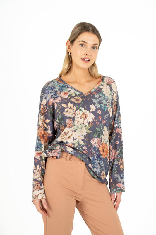 M MADE IN ITALY MEDIEVAL BLUE WILD BLOOMS TOP