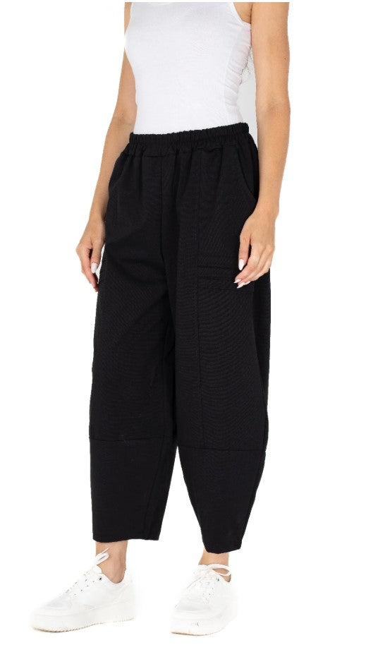 M MADE IN ITALY KNIT BARREL PANTS IN BLACK