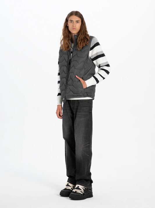 POINT ZERO MEN'S CHARCOAL HIRAM ULTRALIGHT VEST WITH GEO-QUILTING