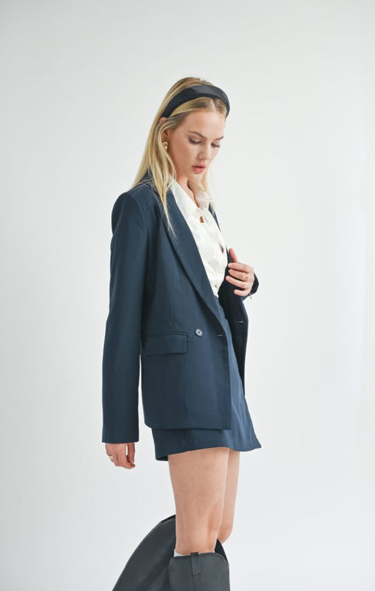 SAGE THE LABEL FINEST TOUCH DOUBLE BREASTED BLAZER IN MIDNIGHT