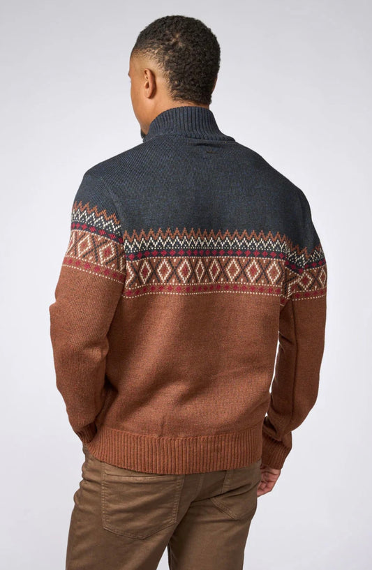POINT ZERO MEN'S TEXTURED CHEST JACQUARD KNIT WITH INSIDE POLAR RUST