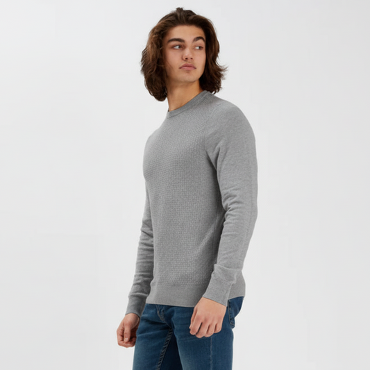 POINT ZERO MEN'S BLUE/BROWN BONDED SWEATER - CREW NECK