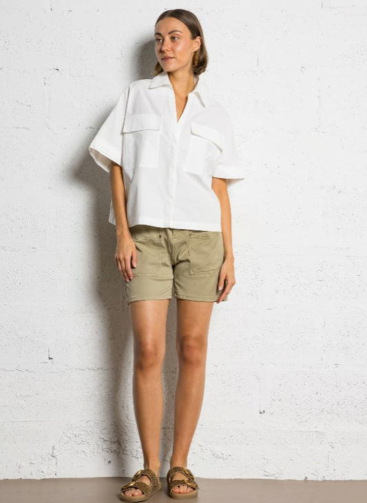 THE KORNER V NECK CAPRI OVERSIZED SHIRT IN WHITE