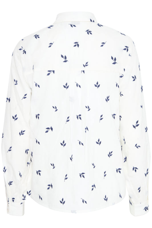 B.YOUNG JADIS LONG SLEEVE SHIRT LEAVES PATTERN SHIRT IN MEDIVAL BLUE