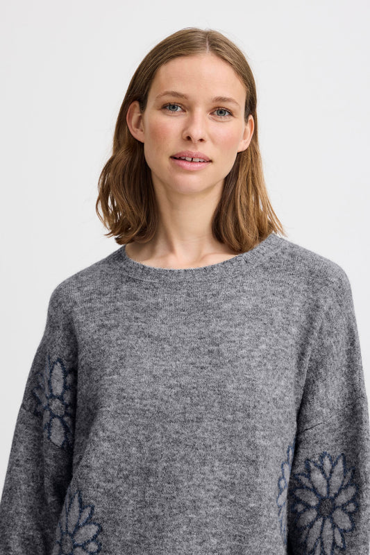 B.YOUNG MID GREY MELANGE MIX OMEA SWEATER