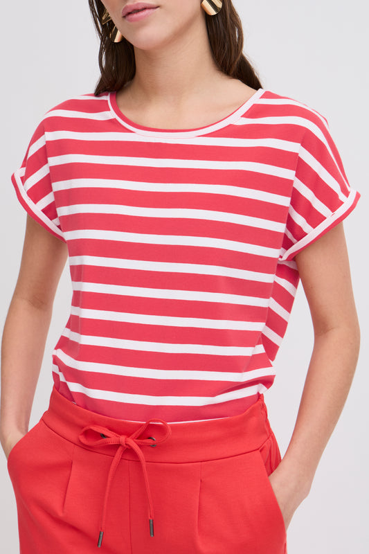 B.YOUNG PAMILA STRIPPED CREW NECK T-SHIRT IN POINSETTIA