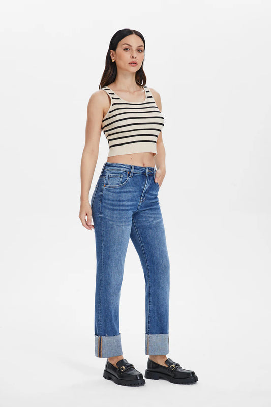 BAYEAS HIGH RISE STRAIGHT LEG DENIM JEANS WITH ROLLED HEM IN SURF BLUE