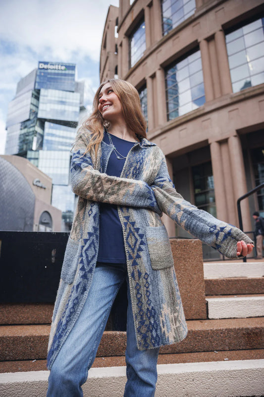 PAPILLON GLOBAL KNIT COATIGAN WITH POCKETS IN BLUE