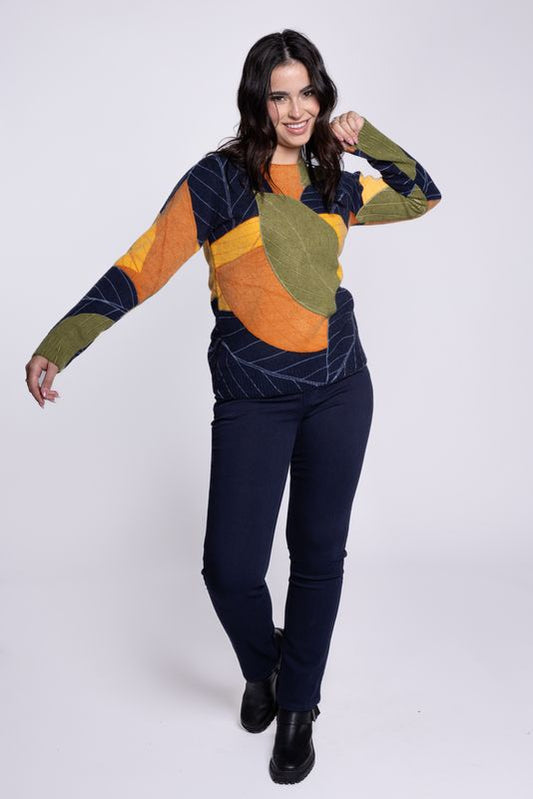 CARRELI SWEATER COLOURED LEAVES PRINT