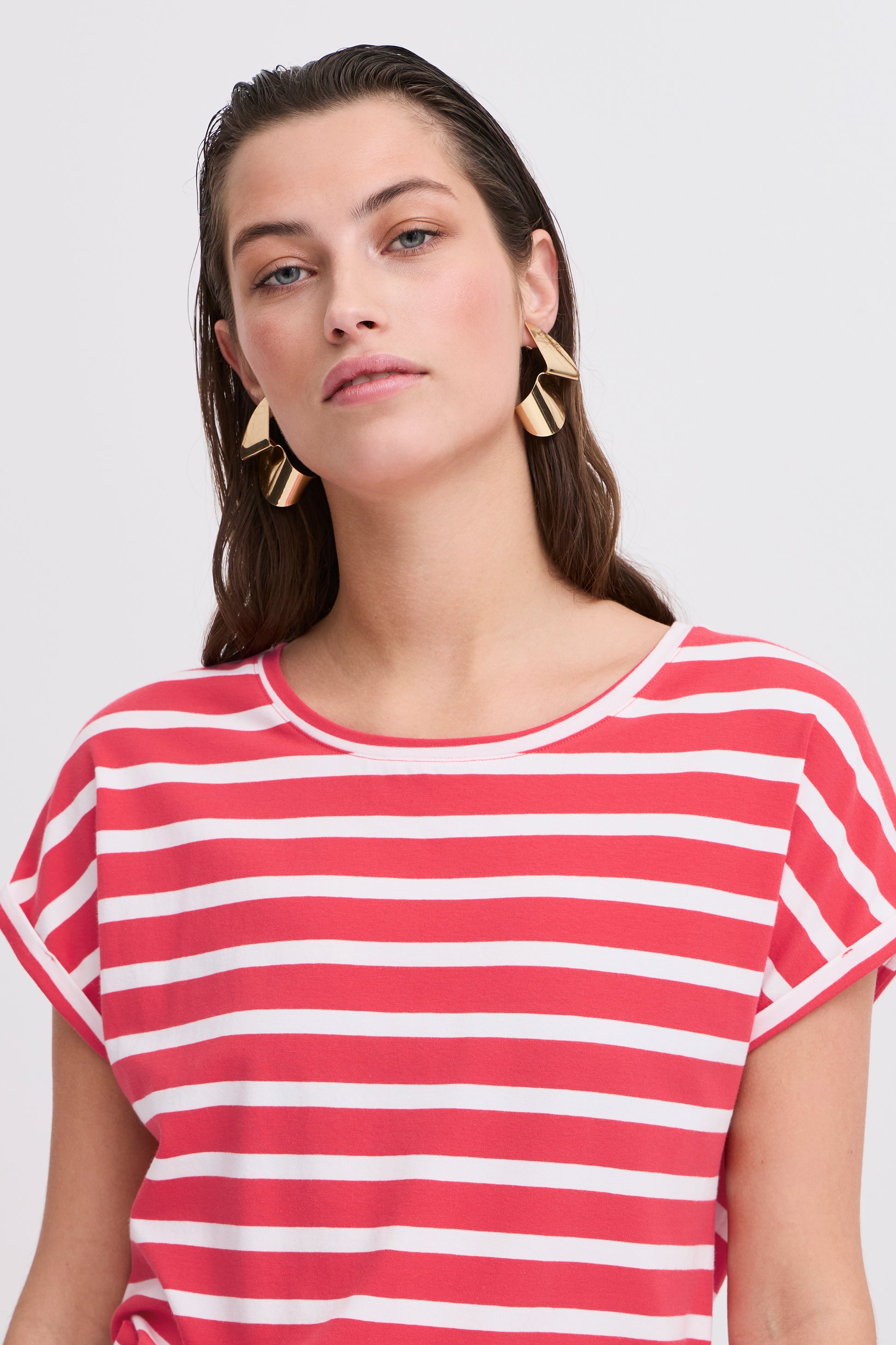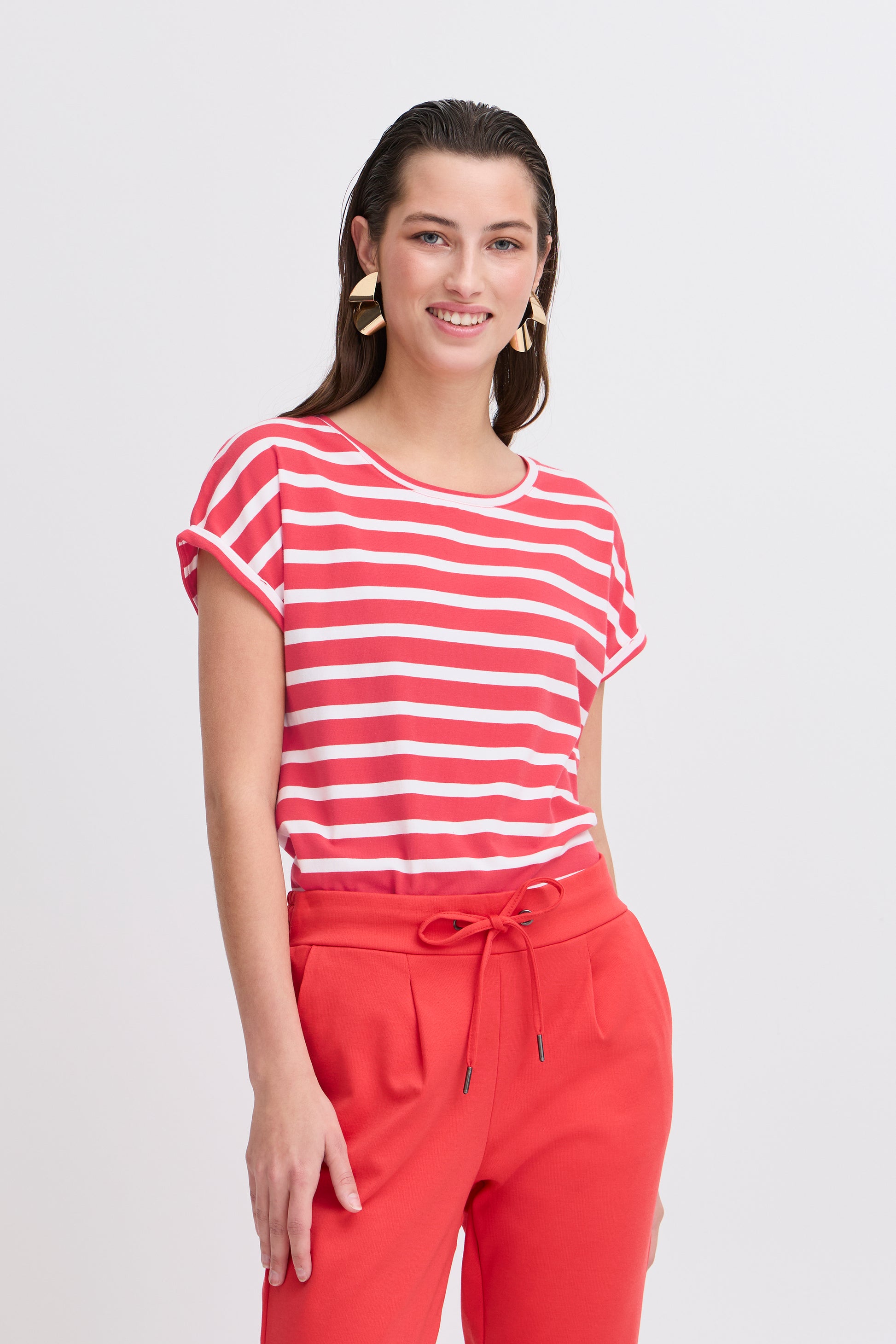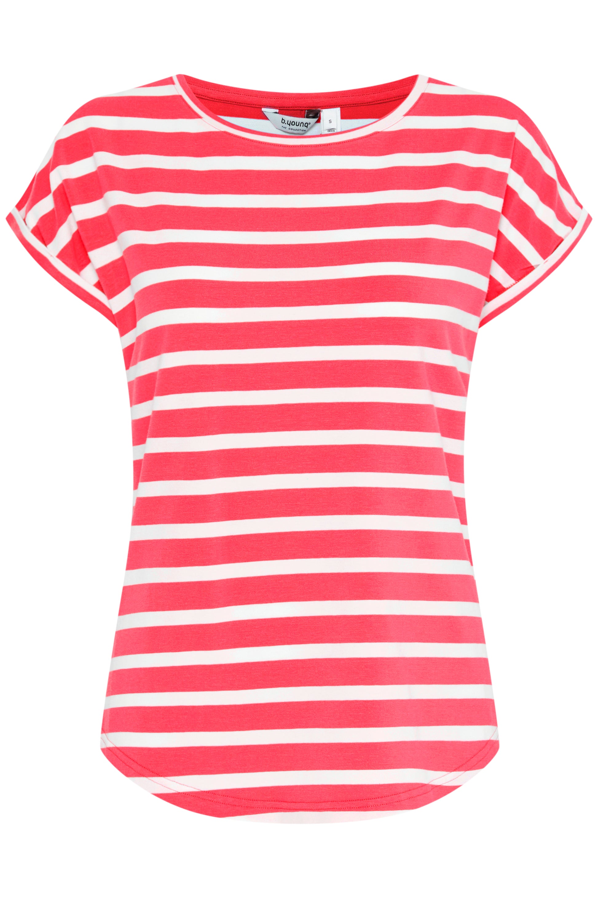 B.YOUNG PAMILA STRIPPED CREW NECK T-SHIRT IN POINSETTIA