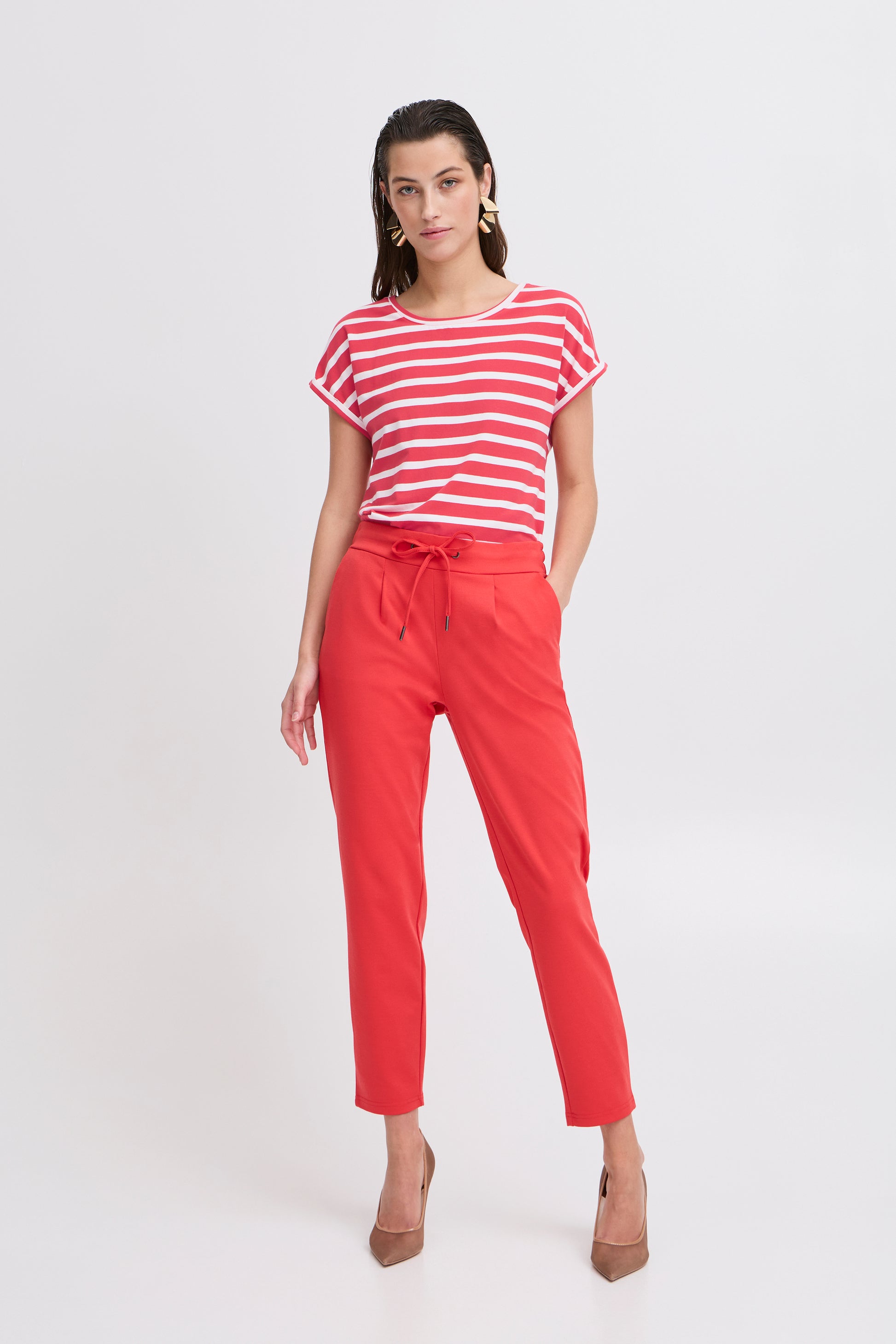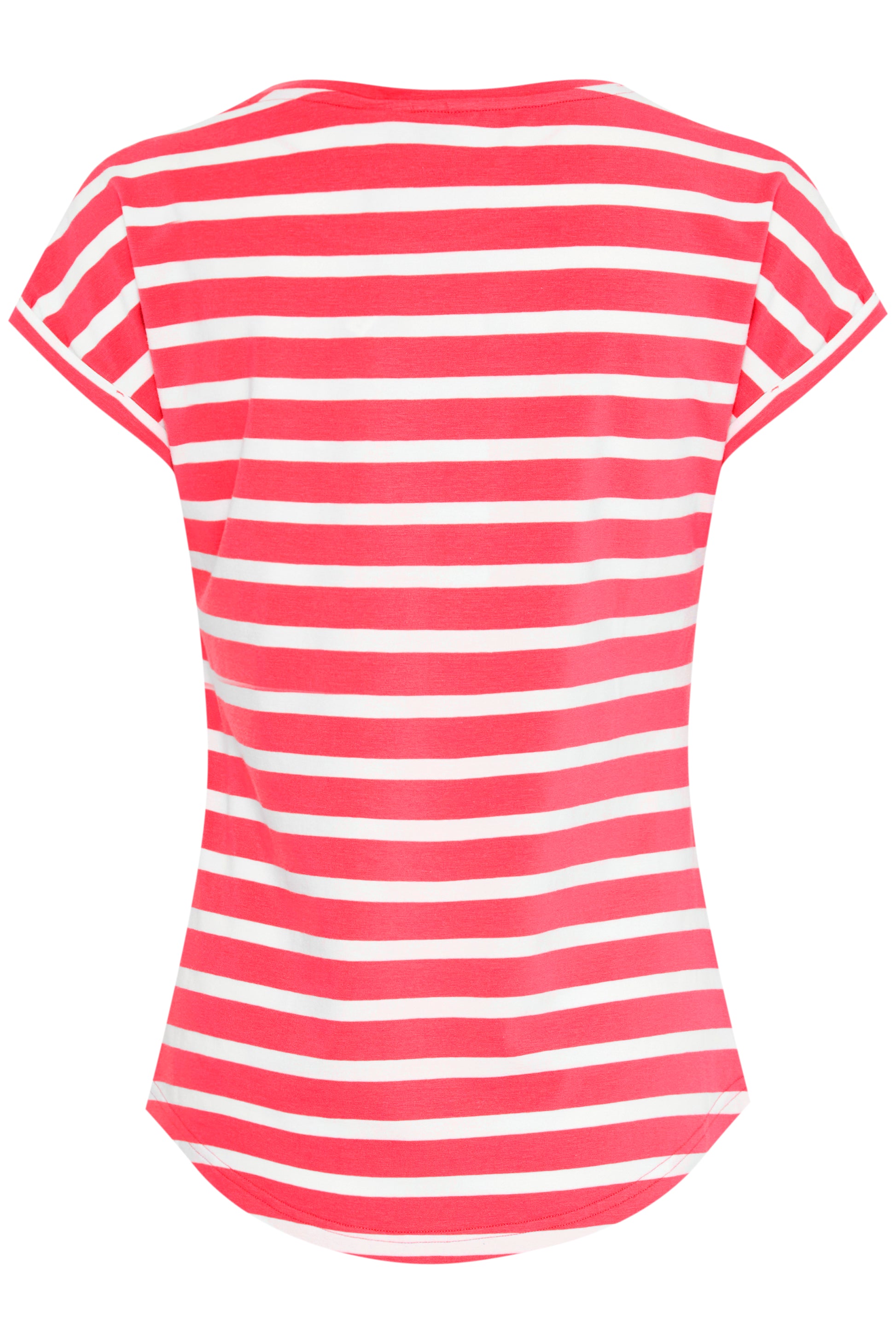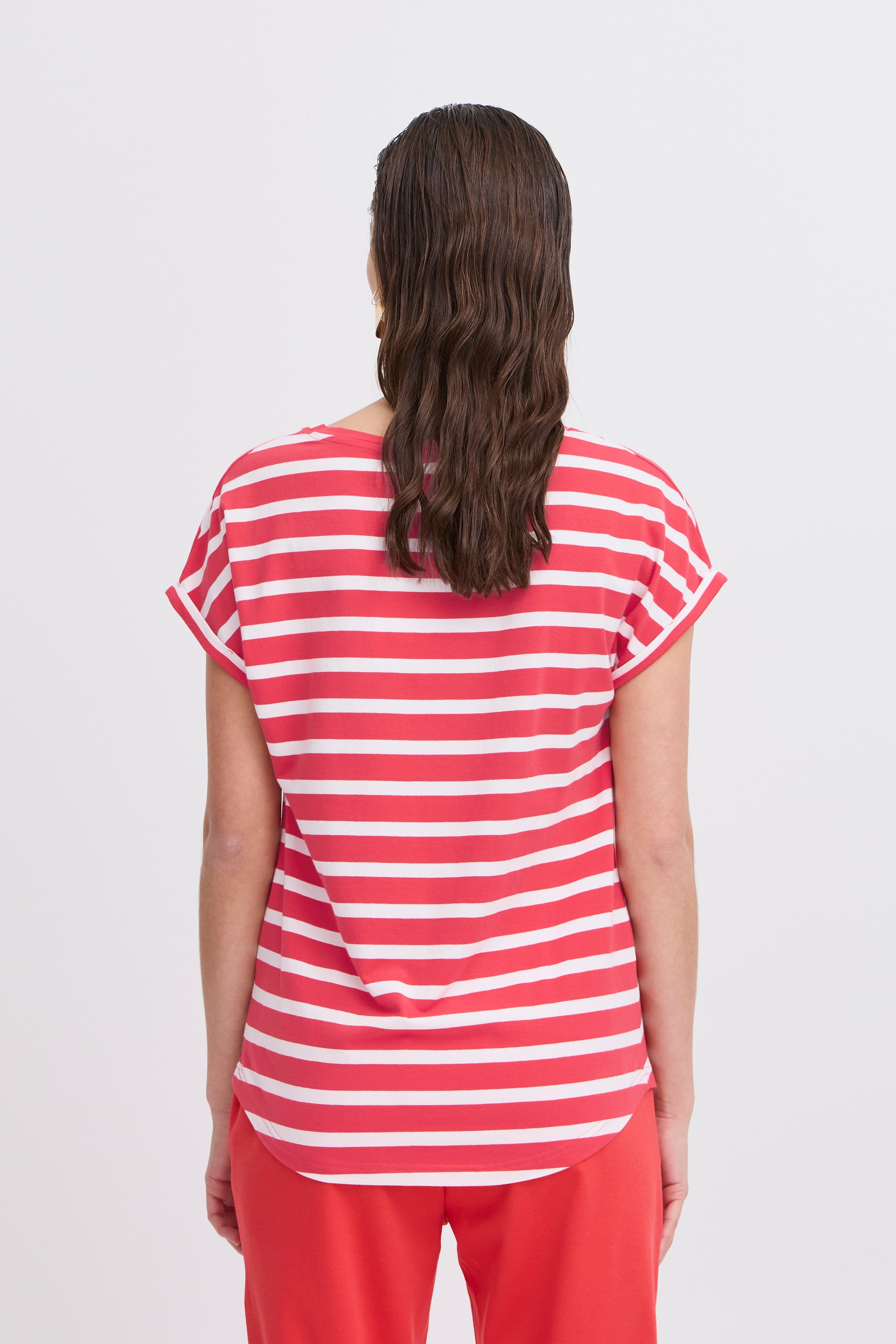 B.YOUNG PAMILA STRIPPED CREW NECK T-SHIRT IN POINSETTIA
