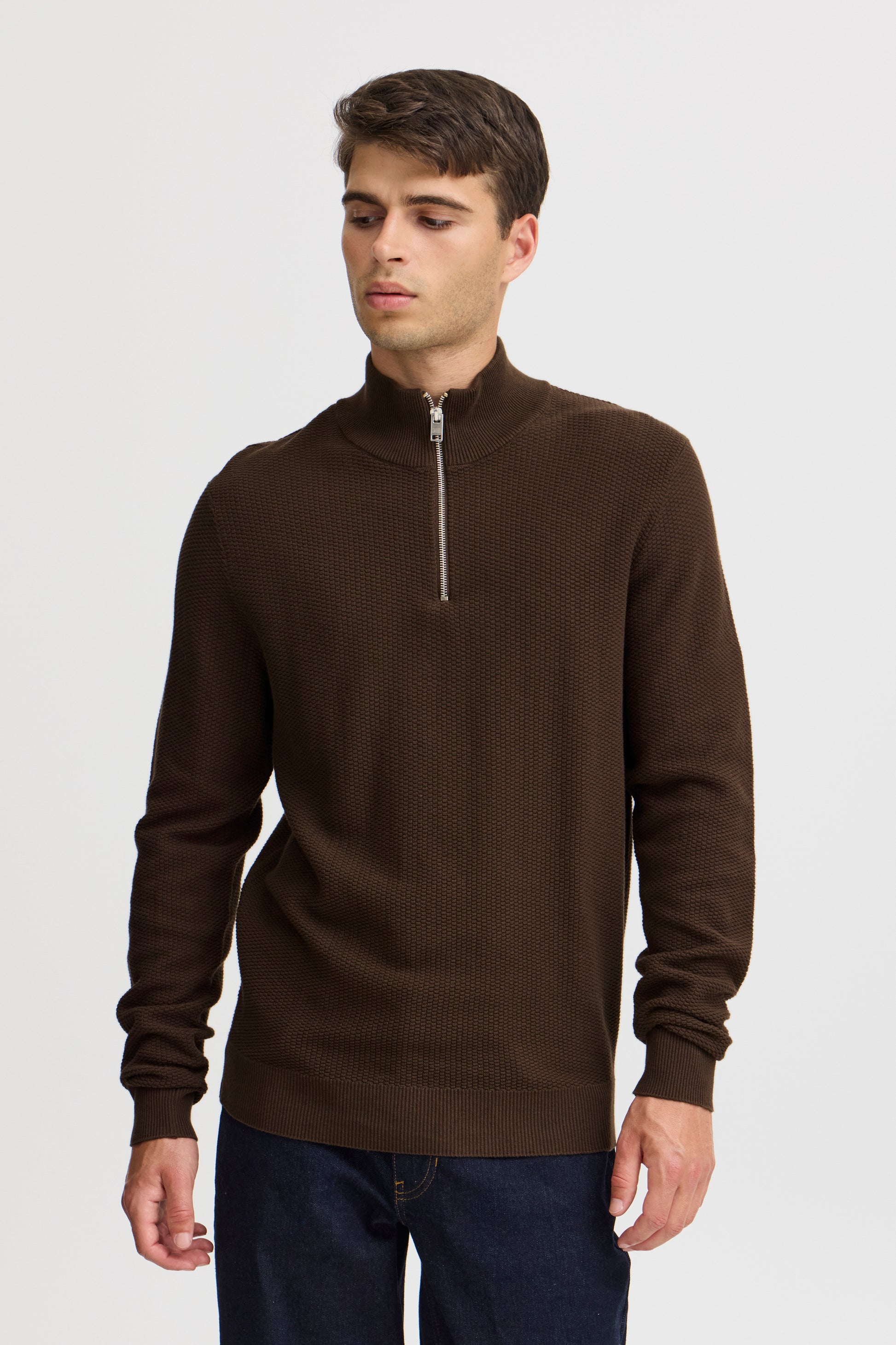 CASUAL FRIDAY MEN'S KARL STRUCTURED HALF ZIP KNIT SWEATER IN DEMITASSE