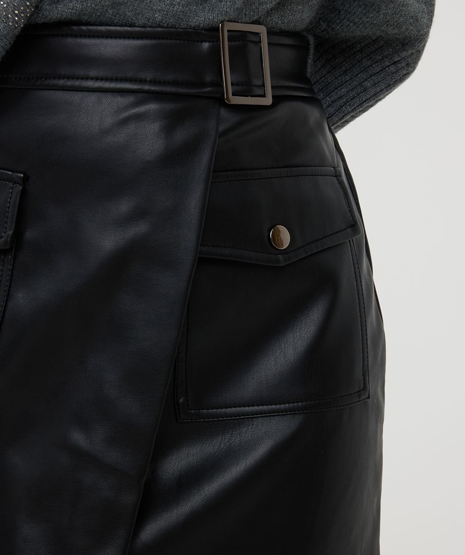 ESQUALO VEGAN LEATHER OVERLAP SKIRT IN BLACK