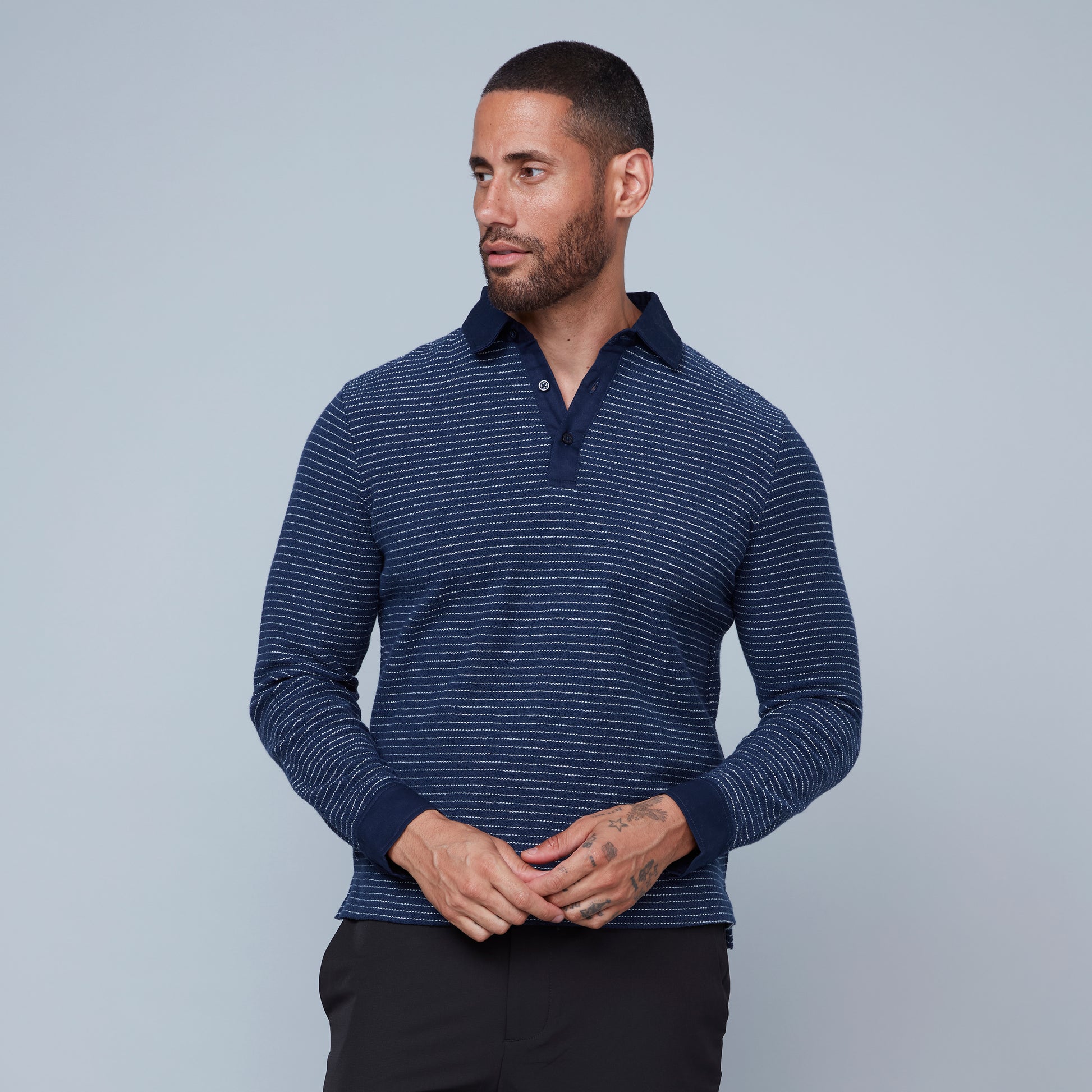 HEDGE MEN'S KNIT POLO LONG SLEEVE SHIRT