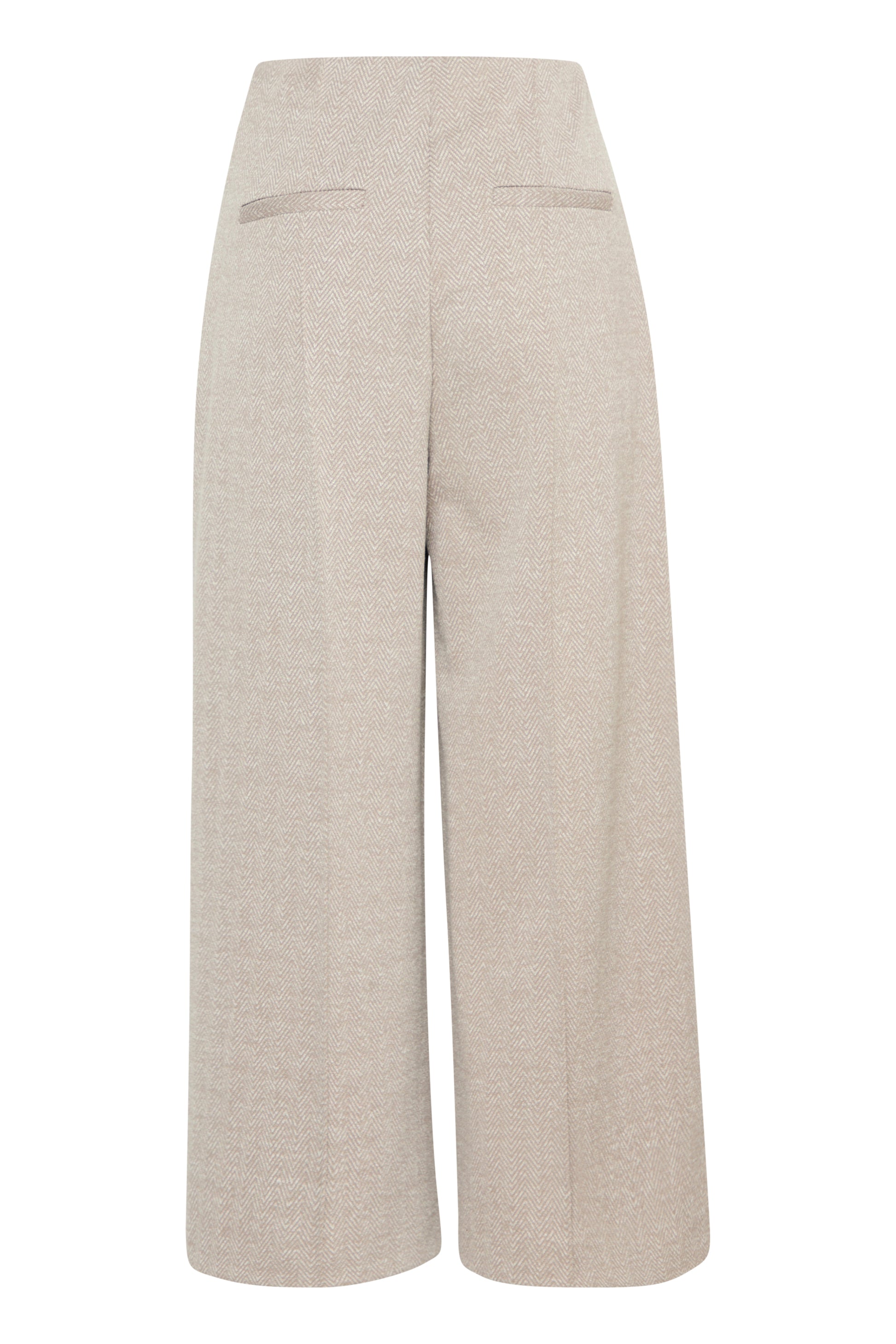 ICHI KATE JACQUARD CROPPED WIDE LEG PANTS IN FUNGI AND ALMOND MILK HERRING