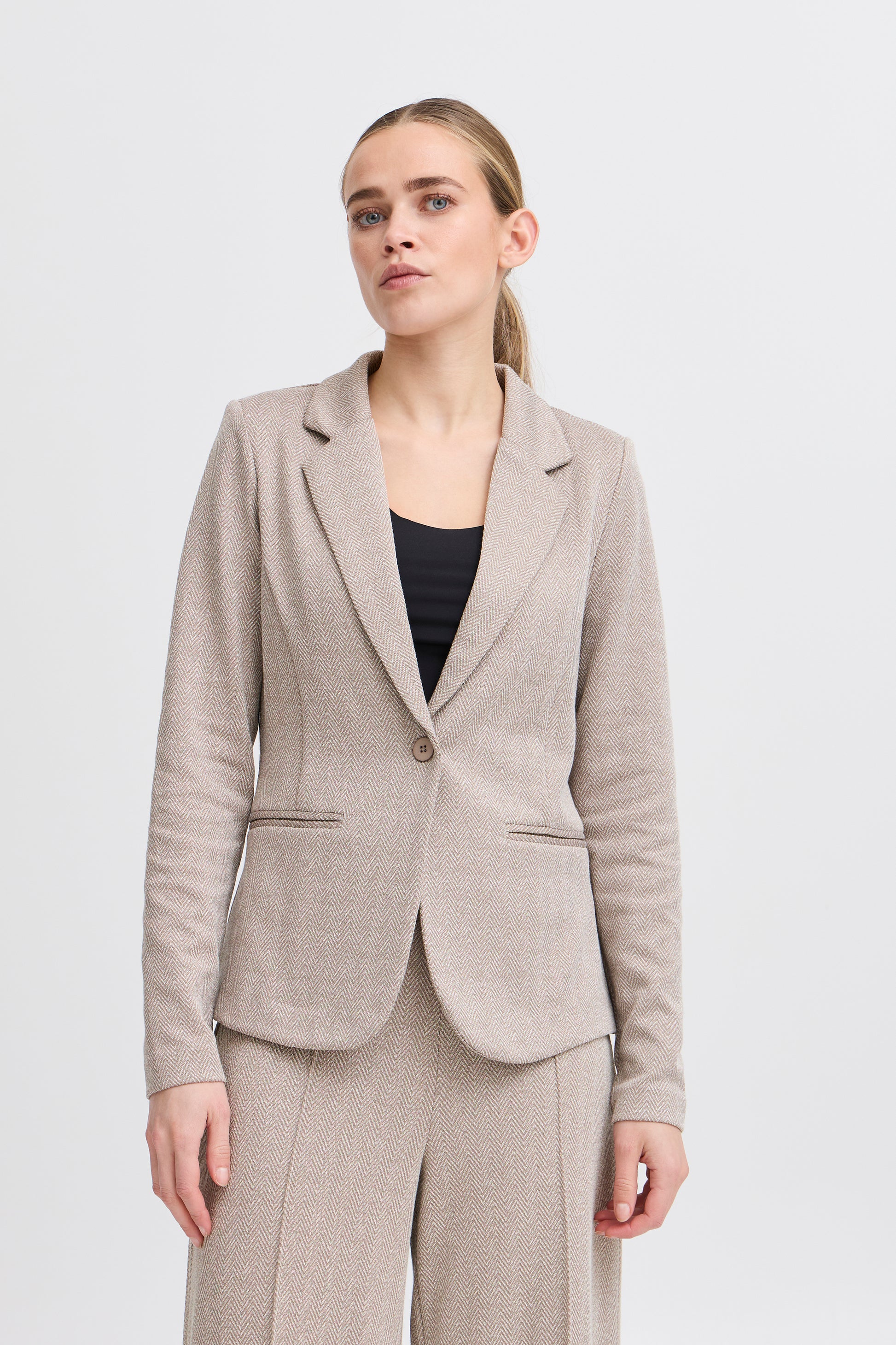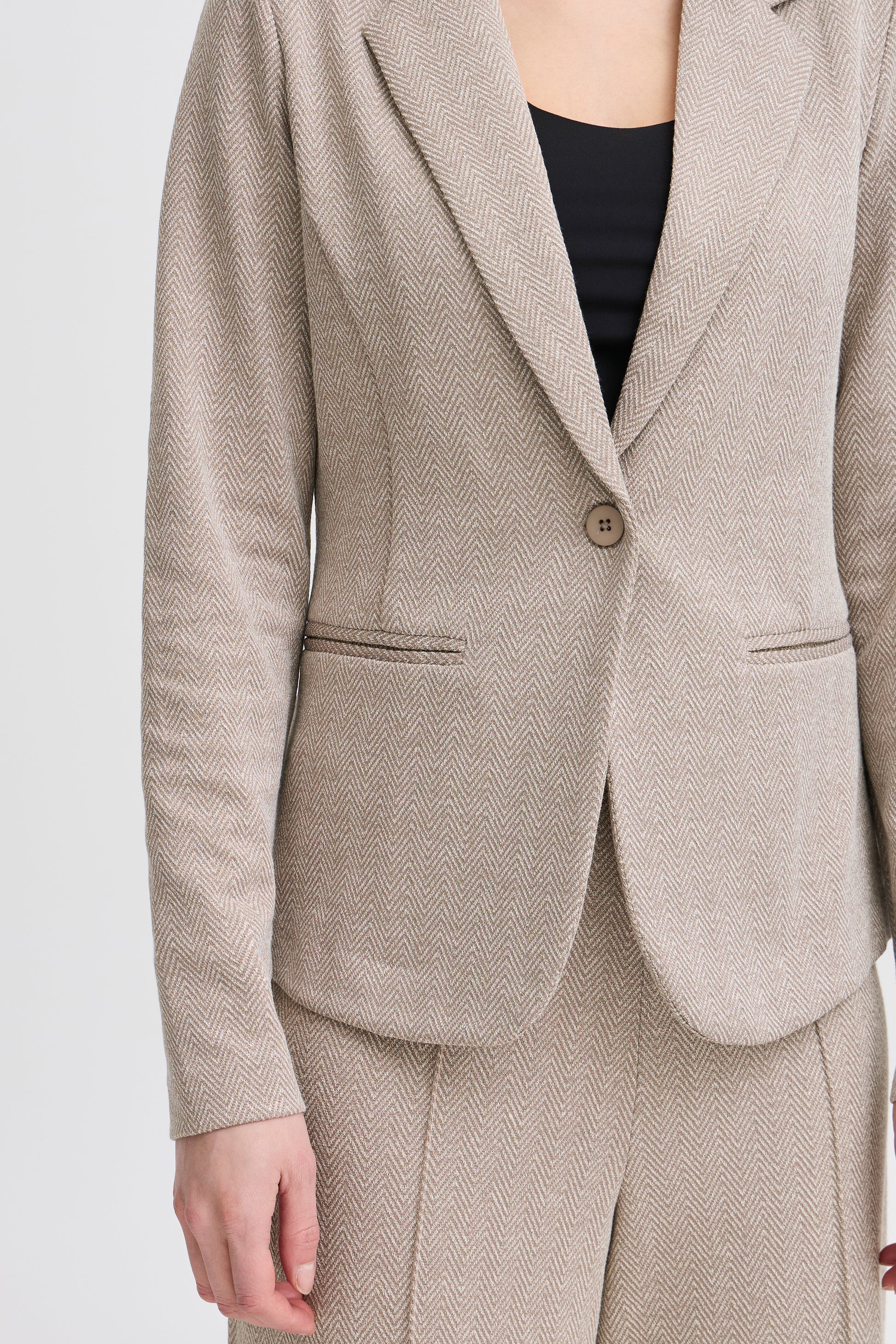 ICHI KATE JACQUARED BLAZER IN FUNGI AND ALMOND MILK