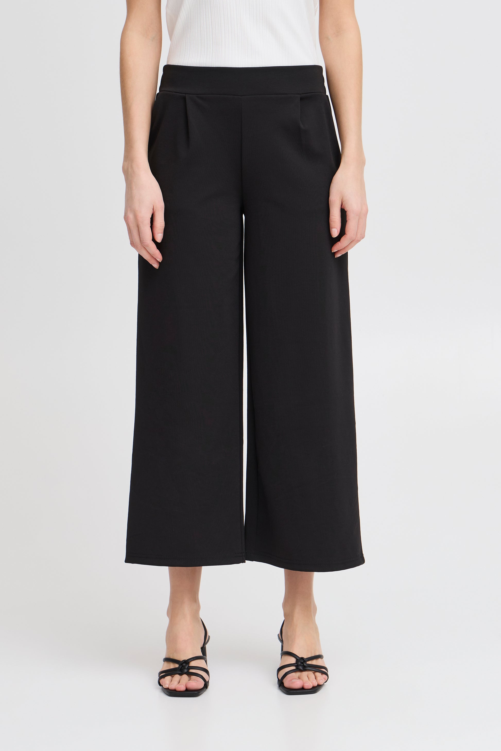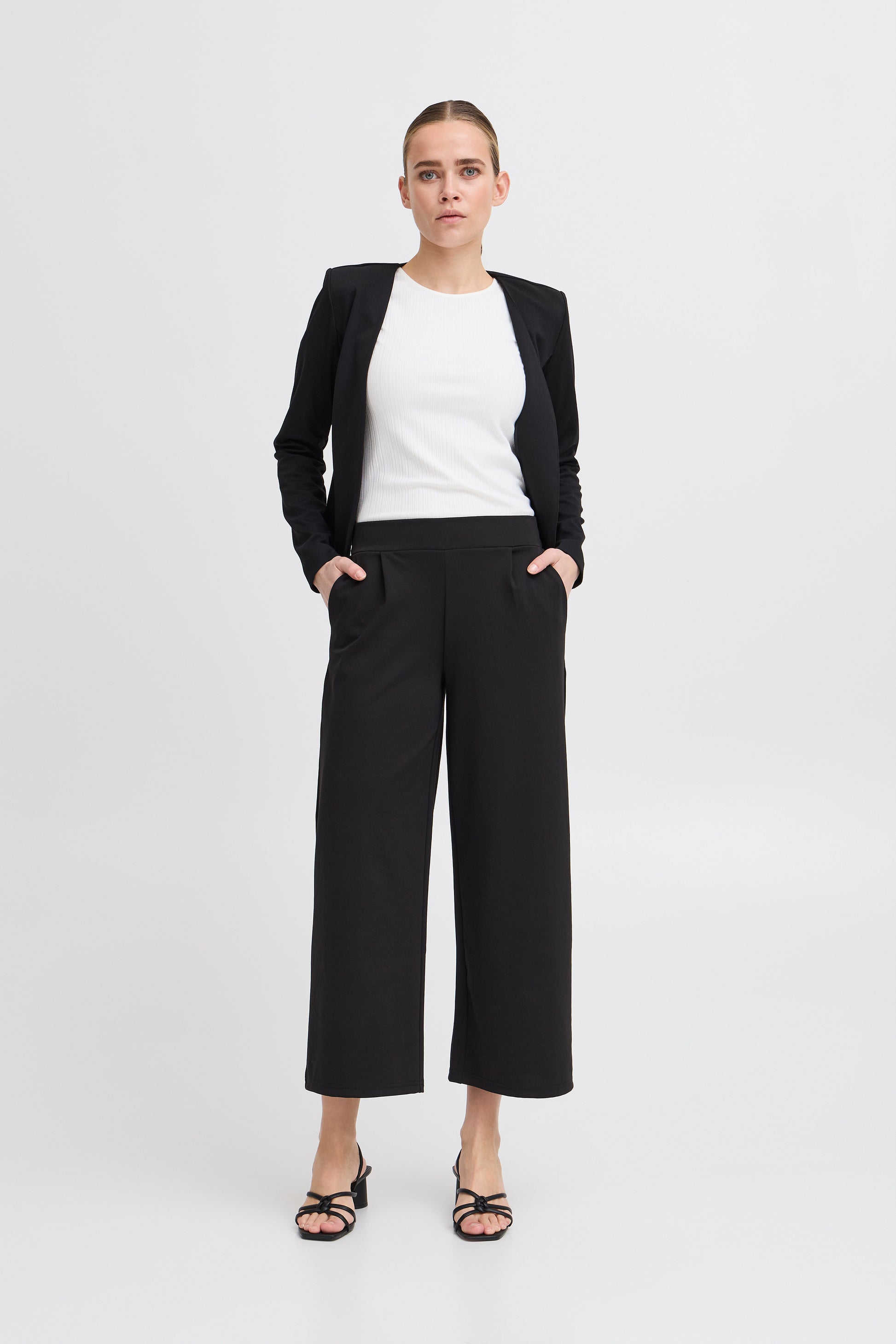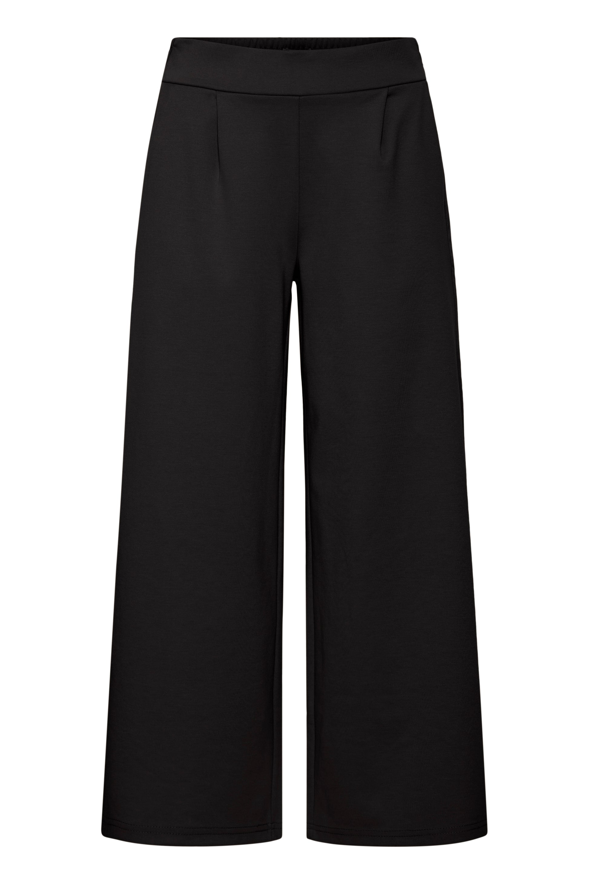 ICHI KATE WIDE LEG CROPPED TROUSERS IN BLACK