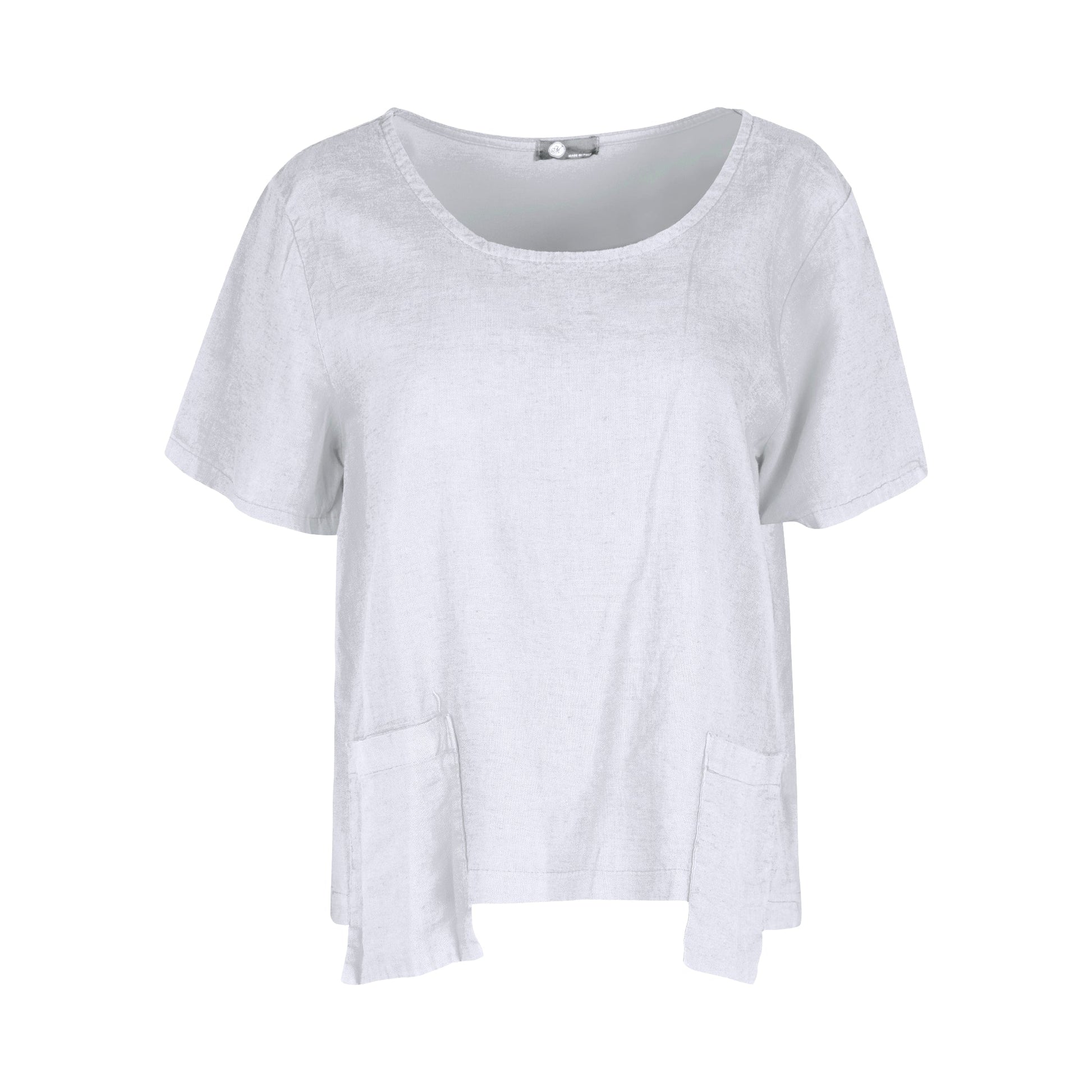 M MADE IN ITALY CREW NECK WOVEN TOP IN WHITE