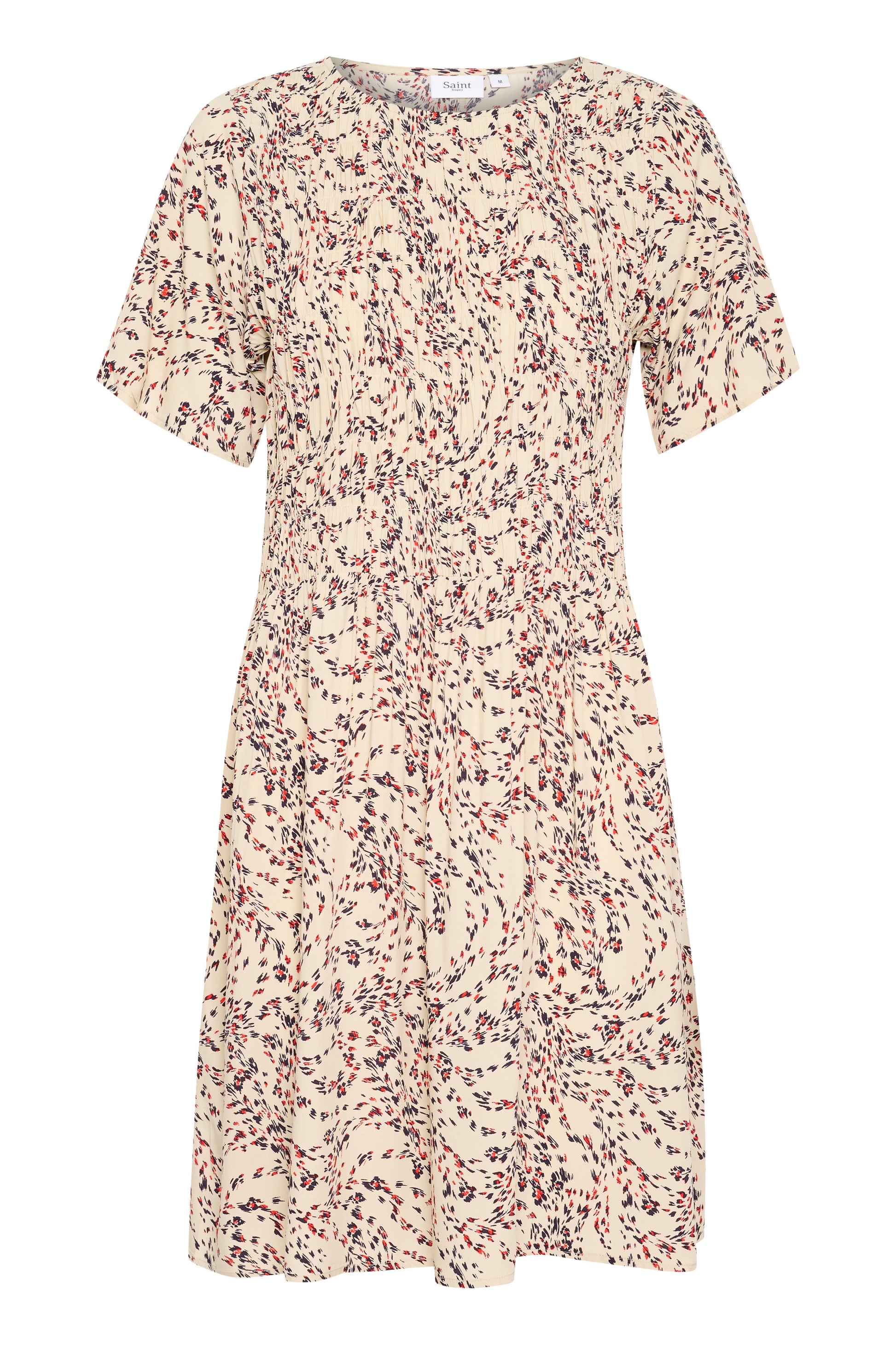 SAINT TROPEZ GISLA SHORT SLEEVE DRESS IN FOG WINDSWEPT LEAVES