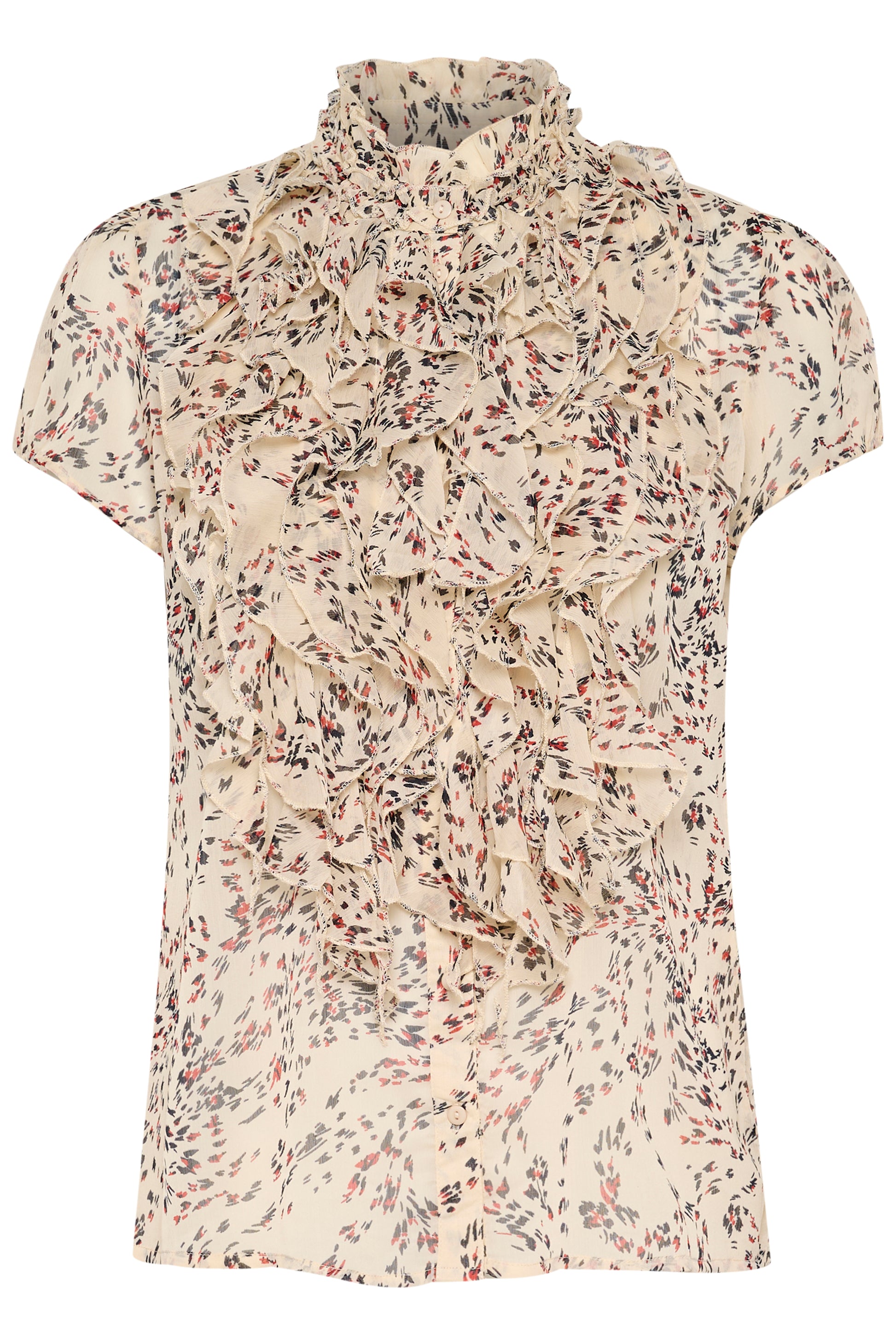 Short-sleeved shirt with high neck, ruffle detail on the chest and down, and button closure. Find Lilja in your favourite print.