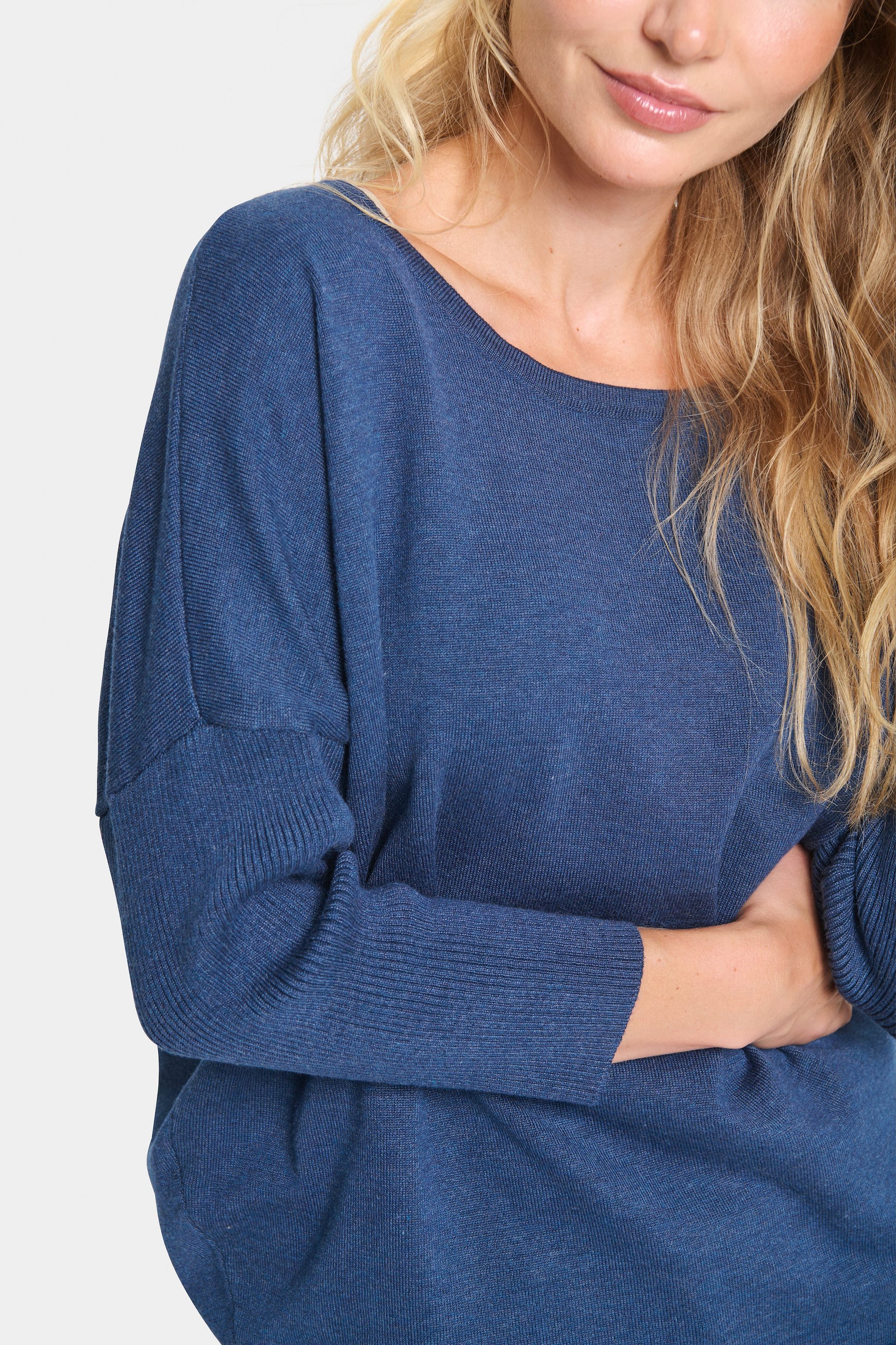 Knitted blouse in a casual fit with a round neck, 3/4 sleeves and ribbing on the neck, the sleeves and at the bottom.
