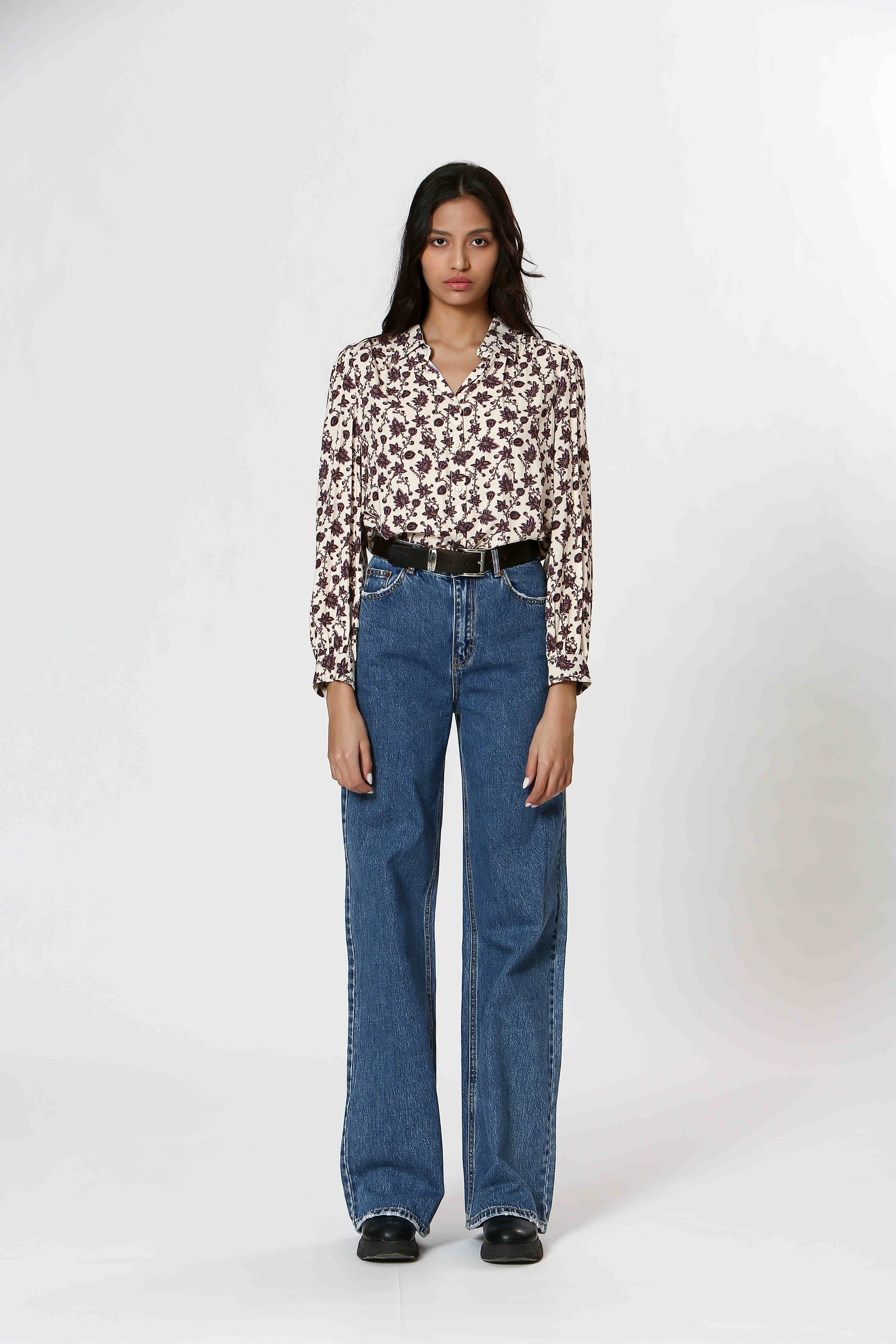 THE KORNER BLOUSE WITH PURPLE FLORAL PRINT IN CREAM