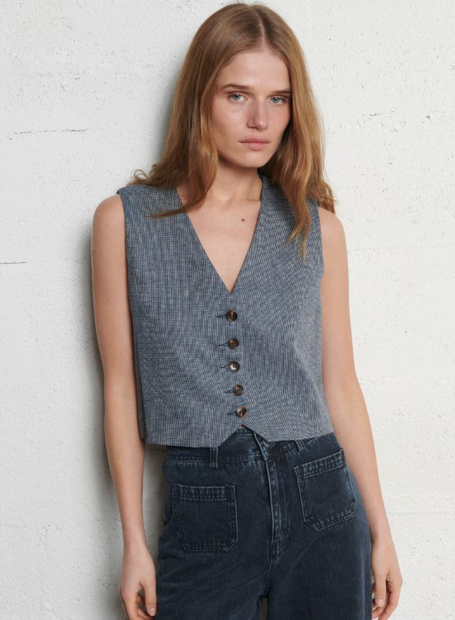 THE KORNER LINEN VEST IN NAVY PATTERN